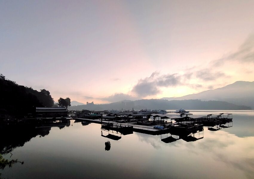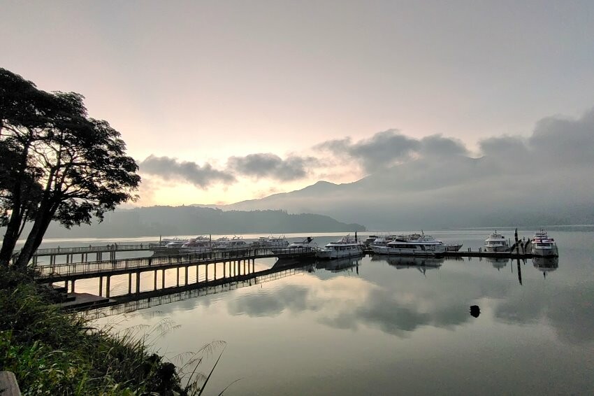 來到南投日月潭旅遊,絕不能錯過日月潭八景之一的「水社朝霧」,尤其來到晨霧瀰漫的「朝霧碼頭」欣賞日出更是非常療癒的一件事!前一晚我們入住在水社碼頭附近的美真館,隔天步行到「朝霧碼頭」不用10分鐘,只要提早半小時出發即可,就能欣賞到絕美的天空之鏡與日出的色溫變化,有時間的朋友也可以多待一會,就能看到太陽從山後探出頭來,感受多變的天光山色與湖面的夢幻美景!