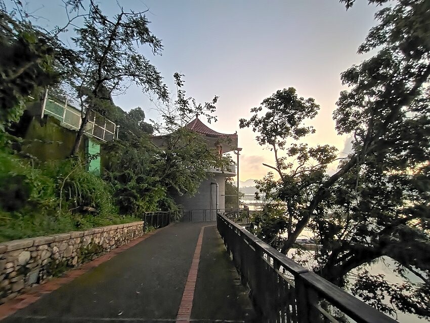 ▼早上的空氣超級好,加上人煙稀少,散步起來悠閒又舒服~~前方還有一個小小涼亭,走累了還可以稍微休息一下!