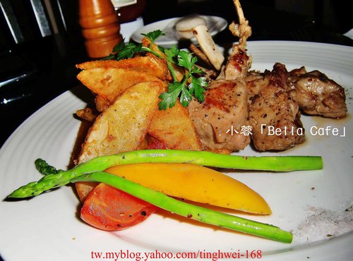 配菜的黃椒、蘆筍 不但色澤亮麗美觀