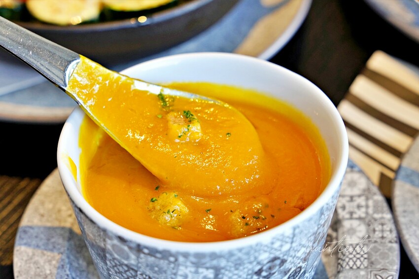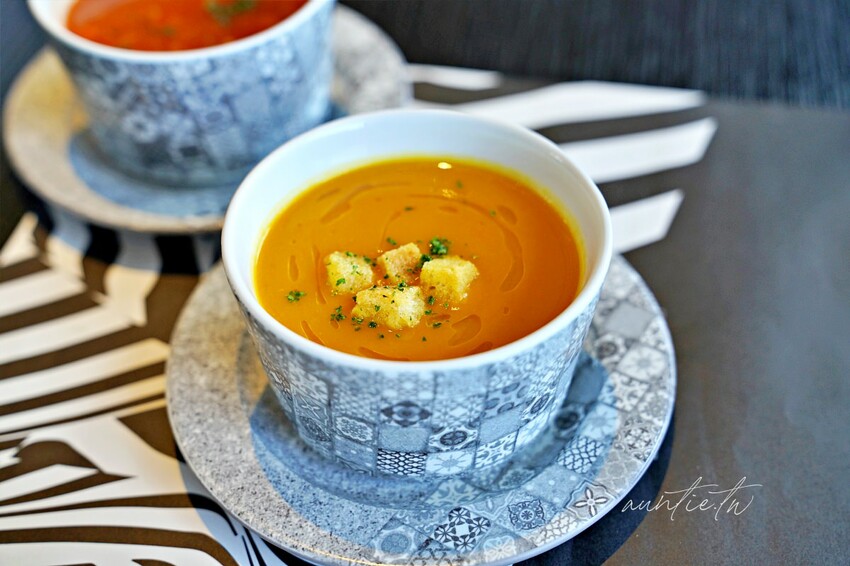 超香濃的奶油南瓜濃湯,加入脆口麵包丁,是自然香甜的南瓜風味,如果有麵包可以沾著吃一定更美味。