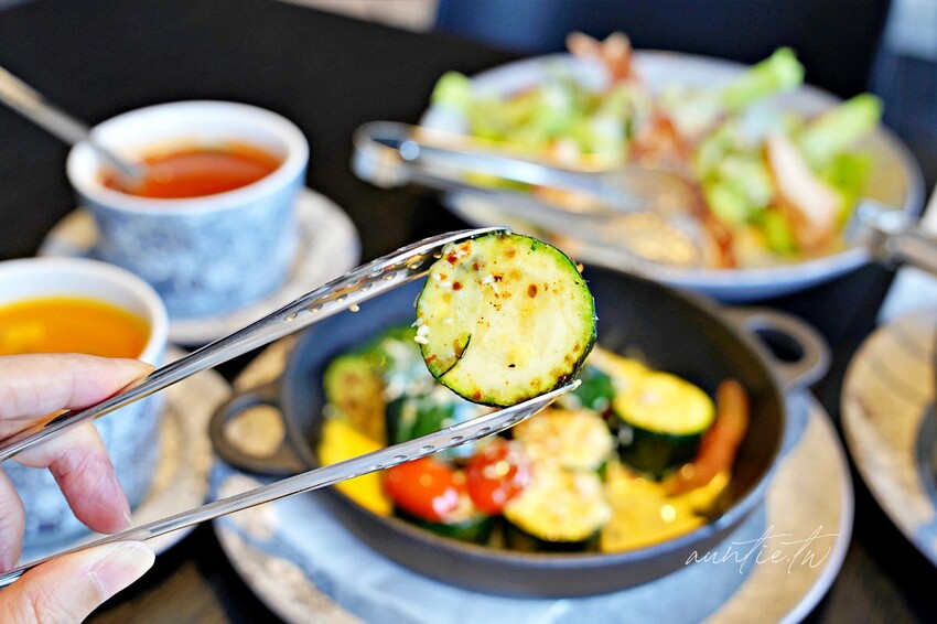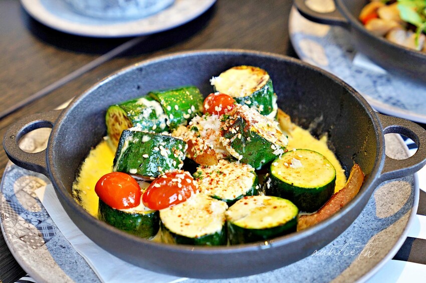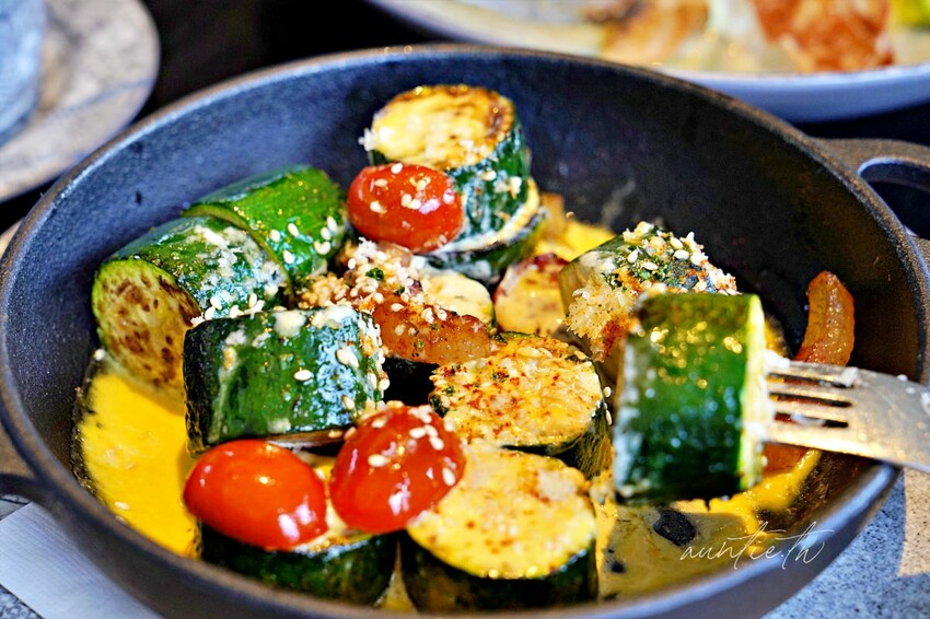 平常就愛吃櫛瓜,尤其是這種切得厚厚的,咬起來又多汁,多了碎培根煙燻的香氣,口感味道都很棒。