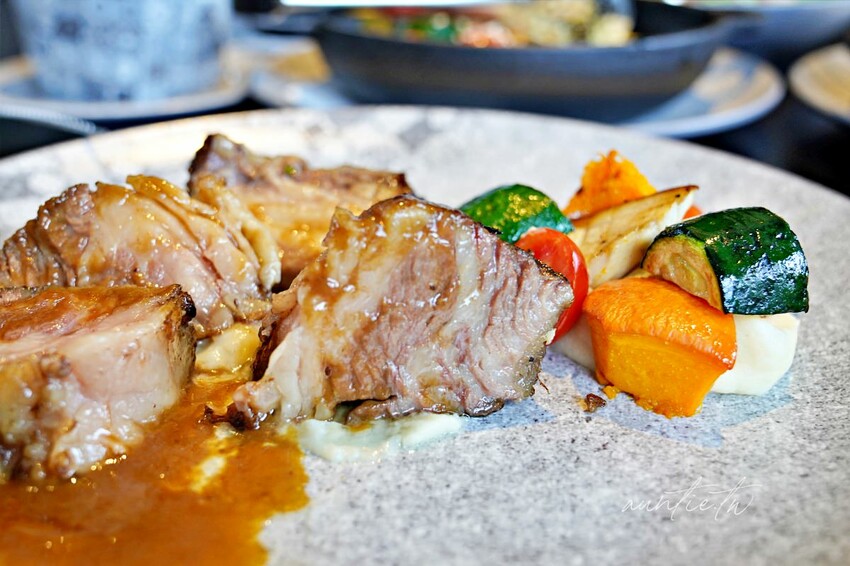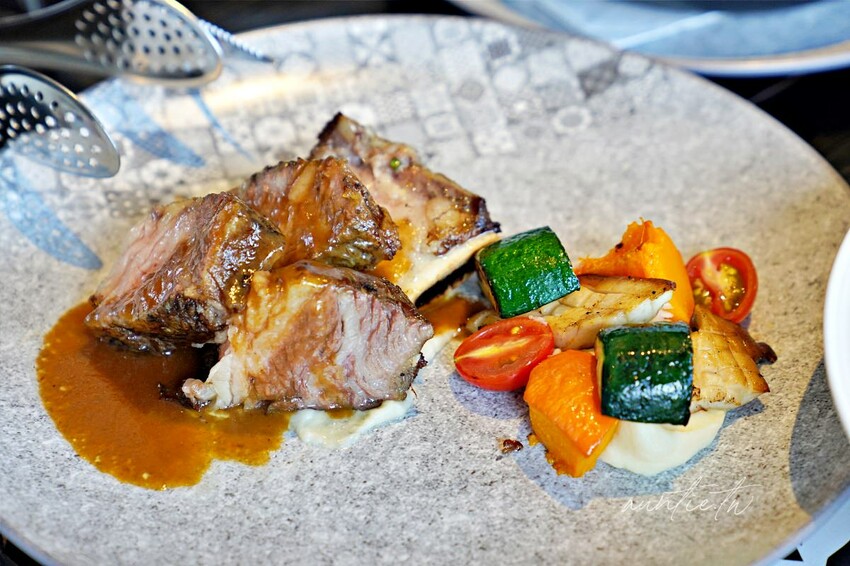 香濃滑口的奶油芋泥,搭配爐烤蔬菜,帶骨牛小排的油脂很豐富,口感根本跟燉牛腩一樣,好軟嫩肉汁又豐富,可搭配紅酒醬汁一起吃,但其實不沾醬就好吃。