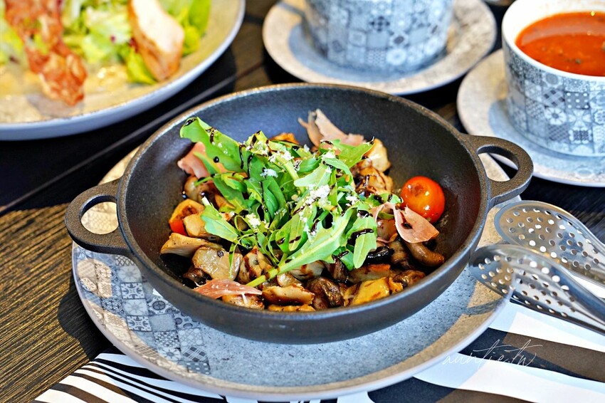 吃義大利菜怎麼可以少了芝麻葉跟火腿!這道爐烤野菇帕瑪火腿的菇味真的很濃烈,一度以為是有刨松露在裡頭,味道超香濃的!