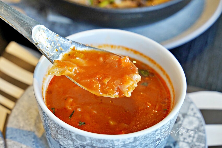 ZEBRA的番茄燉湯酸度比較高一些,加了牛番茄與羅馬番茄、蔬菜熬煮而成的燉湯,喝起來非常爽口,而且多了一股義式香料的氣息,味蕾層次很豐富。