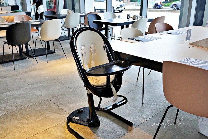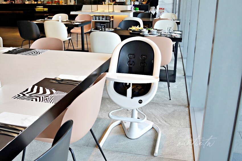 桌上的餐墊與嬰兒座椅也都很有設計感耶!