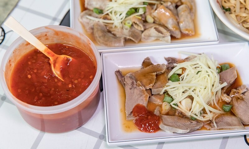 小菜我選了豬舌和粉腸,豬舌脆彈粉嫩極有水準,粉腸也沒有異味,咀嚼端的油、粉口感及甜度也都讓人滿意,淋上加了一點點辣椒醬的醬汁也頗對味,配料又是蔥花又是薑絲,也算是有誠有意。
