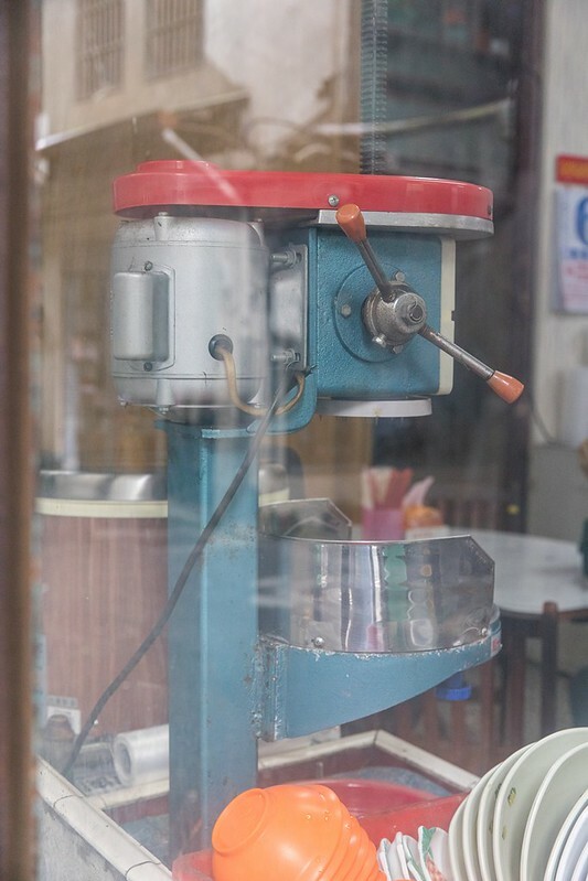 店裡放著一台古早挫冰機,猜想夏天有提供冰品。