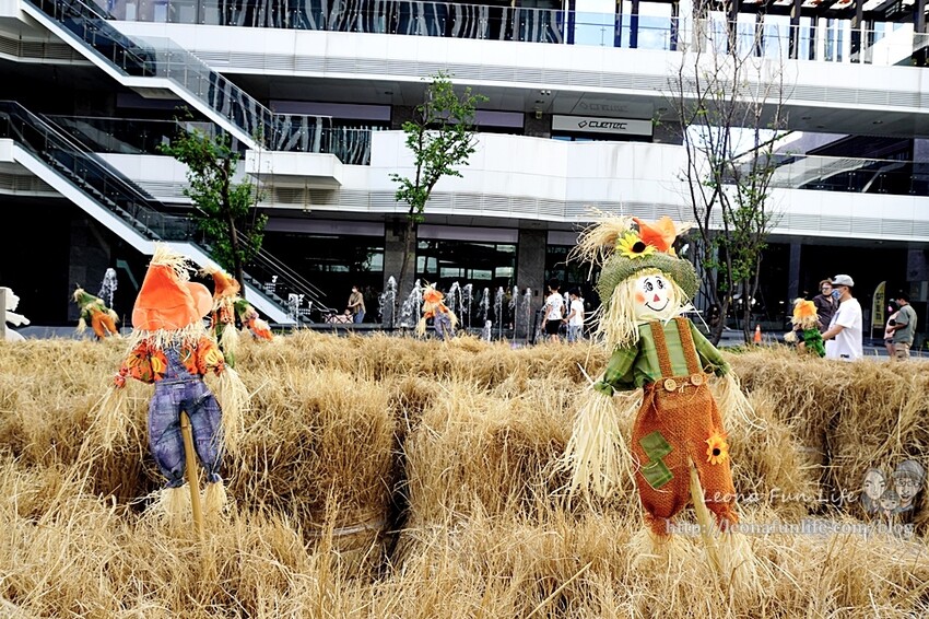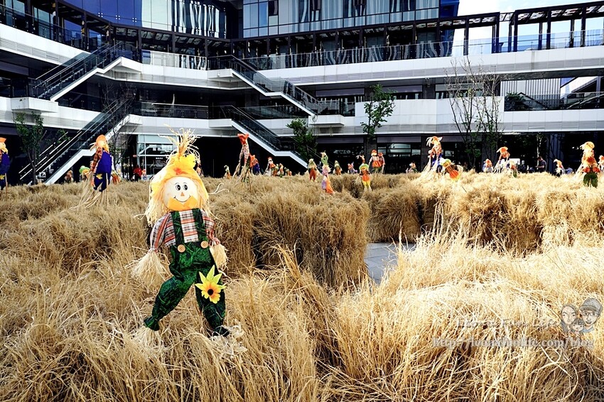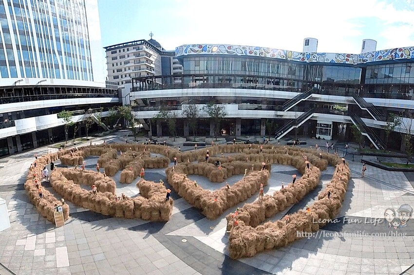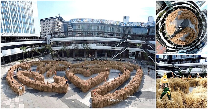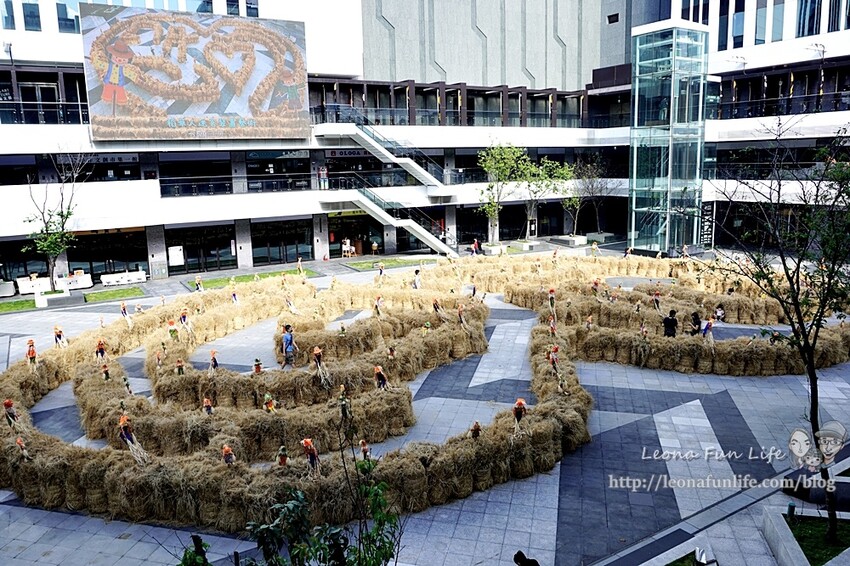 台中大里免費景點-大里藝術廣場巨型稻草迷宮,以稻草捲搭建大型迷宮,搭配可愛稻草人超好拍,假日還有文創市集街頭藝人表演喔!三千坪大的異想新樂園、東湖公園也可以順道放電玩耍喔!