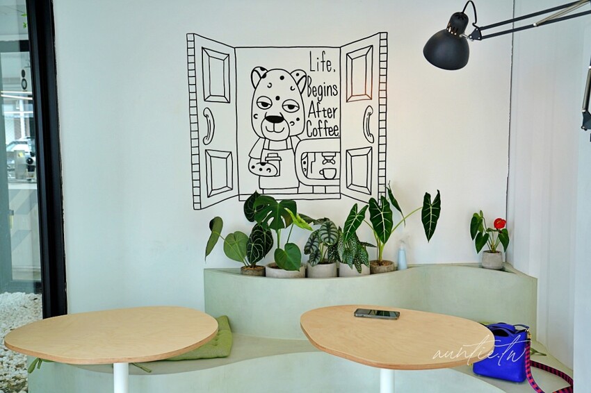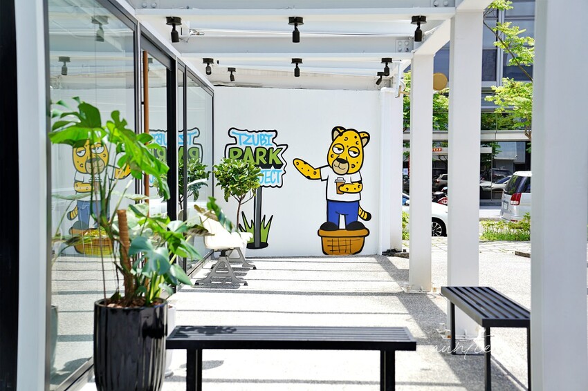 Tzubi Coffee內湖店是白色貨櫃屋,風格很顯眼,戶外有很可愛的花豹塗鴉(牠應該是豹吧😅),二樓也有座位,不過鐵皮貨櫃的關係,整體有點熱,但是很好拍照啦,採光很好。