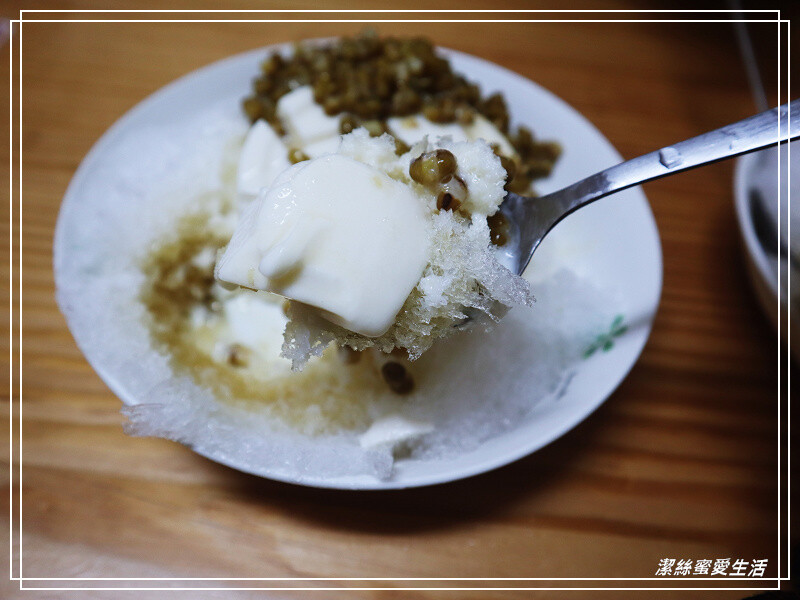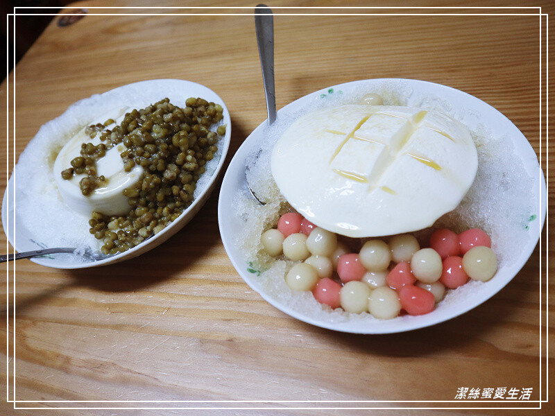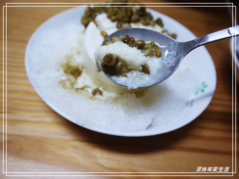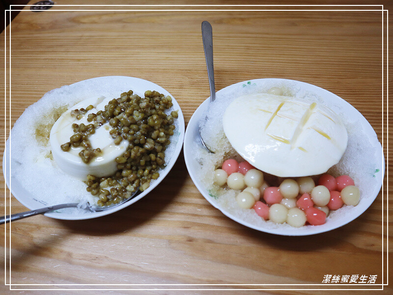招牌杏仁豆腐很好吃,軟Q咕溜,味道香醇但不會刺鼻,綠豆煮得有軟綿我們都喜歡。