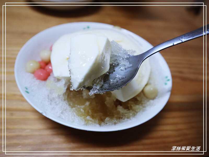 鮮奶豆腐主體也是好吃的,不像豆花般容易鬆散化開,吃在嘴裡都能明顯感受到奶香。