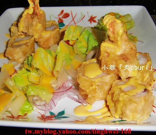 蝦卷搭配黃芥末醬一起吃也很對味可口~