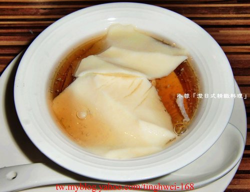 最後上了甜點是手工豆花 , 餐後吃上這碗口感軟綿的甜豆花