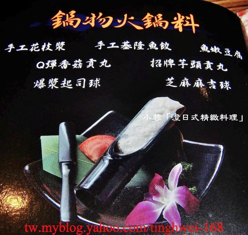 包括了帝王蟹、黃金蝦、大蛤蠣、東石鮮蚵、軟絲、魚片、手工花枝漿