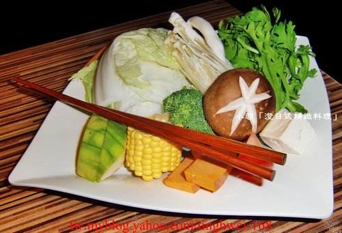 接著上了昆布清湯的鍋底與店家當日搭配的蔬菜盤
