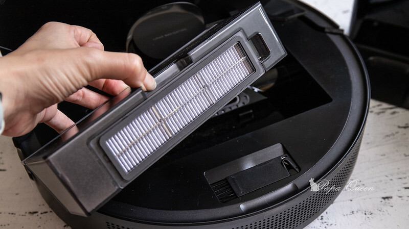 整台設備都是純黑,邊緣則是選用消光黑,充電座也是黑色(建議安置於寬廣的地方讓掃地機器人方便進出)