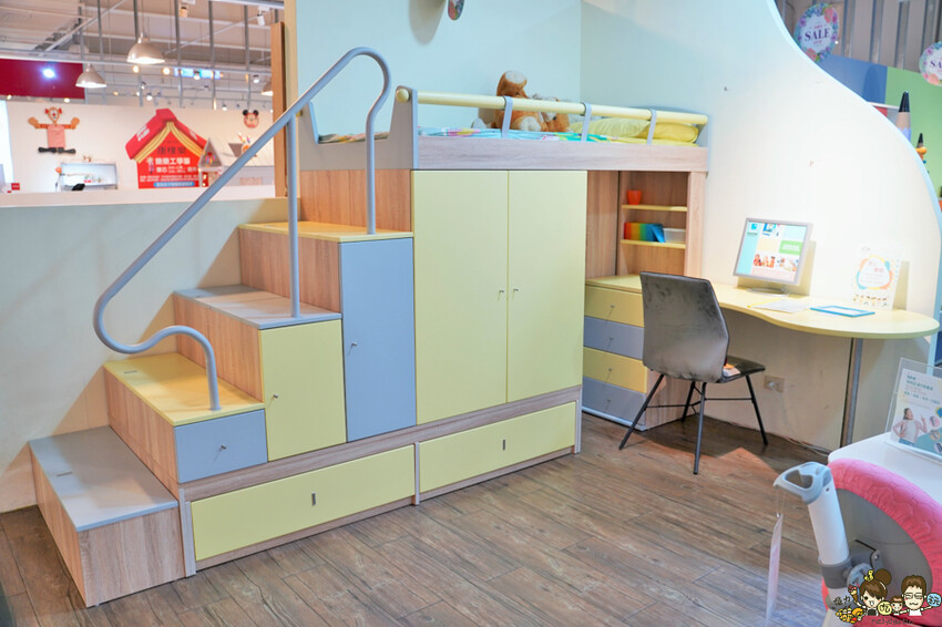 最熱賣暢銷的兒童床組,有書桌、床墊、多收納空間,配色相當鮮明