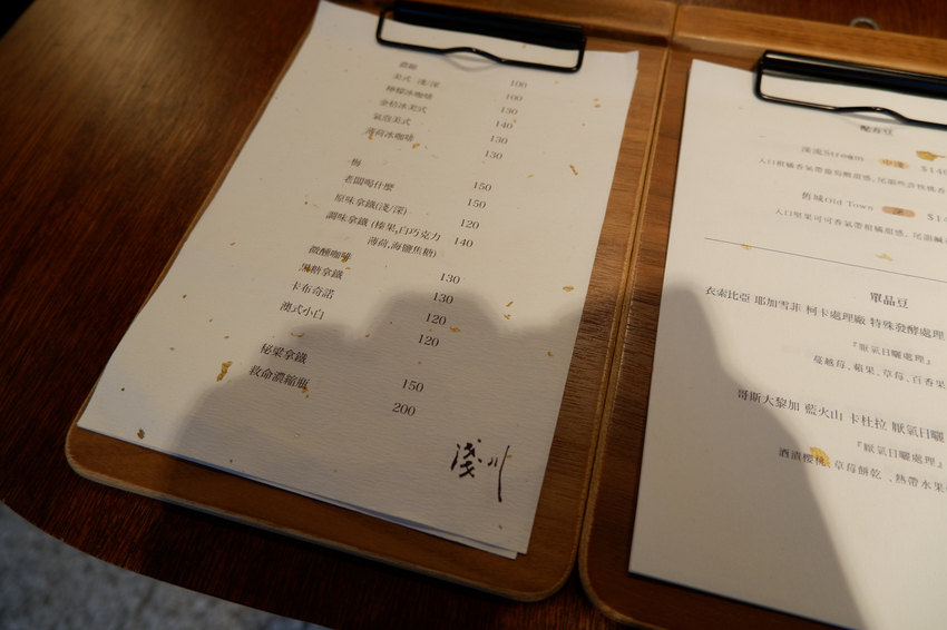 釘在馬賽克小磚牆面上的淺川 Asakawa招牌,寫意流暢的手寫字體非常詩情畫意;店門正面也很像是早期西裝訂製店或舶來品商家的立面,木質裝潢做的燈箱收邊,質感加分許多;不過我最驚訝的是這個店面是有地下室的,手扶梯與吧檯區的設置就佔據許多空間,改裝後保留的摩石子牆面,透露出舊時代的美感。