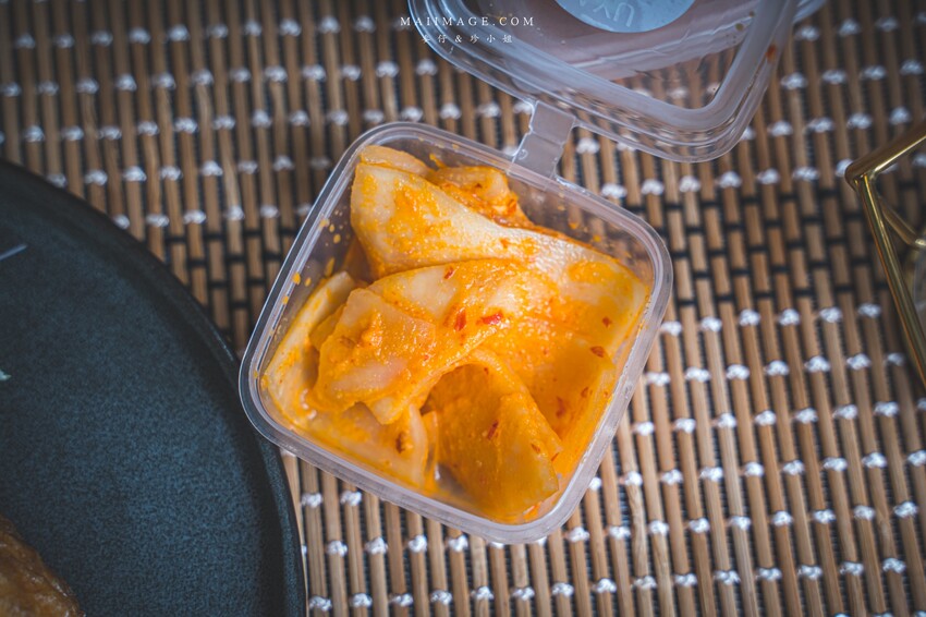 ▲如果點脆皮雞還會再送上一盒黃金泡菜,而點1999元的8道料理也會送上一份,所以這天我有兩份可以享用,家裡的人大多不嗜辣那通通都是我的啦。