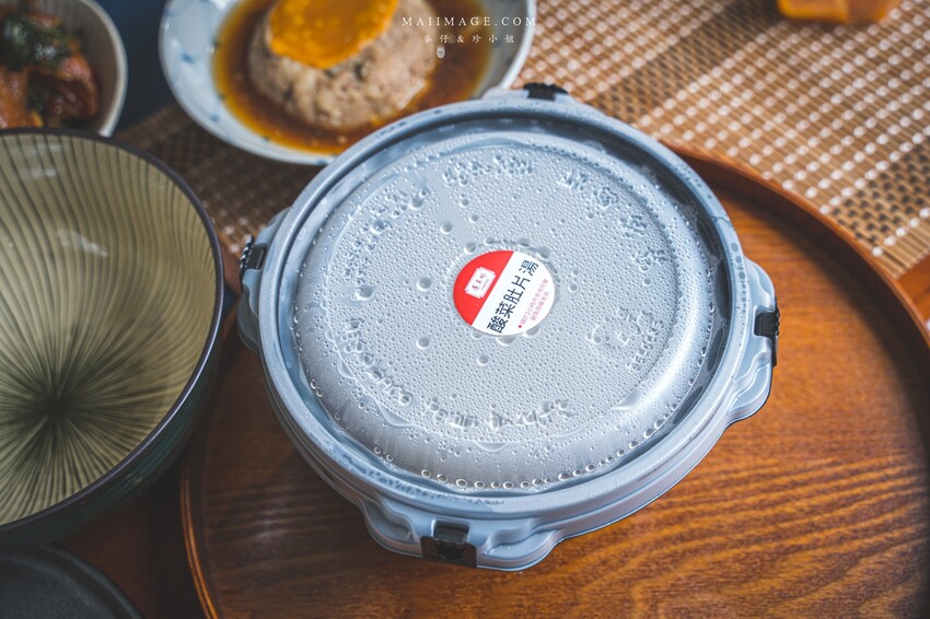 ▲珍小姐特愛吃酸菜,再加上豬肚的彈牙口感只要來這都會點給她喝,這次蓬萊邨的外帶料理有這道出現立馬就列入名單,回家喝同樣過癮,裡面的配料給的扎實,豬肚也處理的到位,爽口的湯頭帶點微微的酸度,相當解膩。