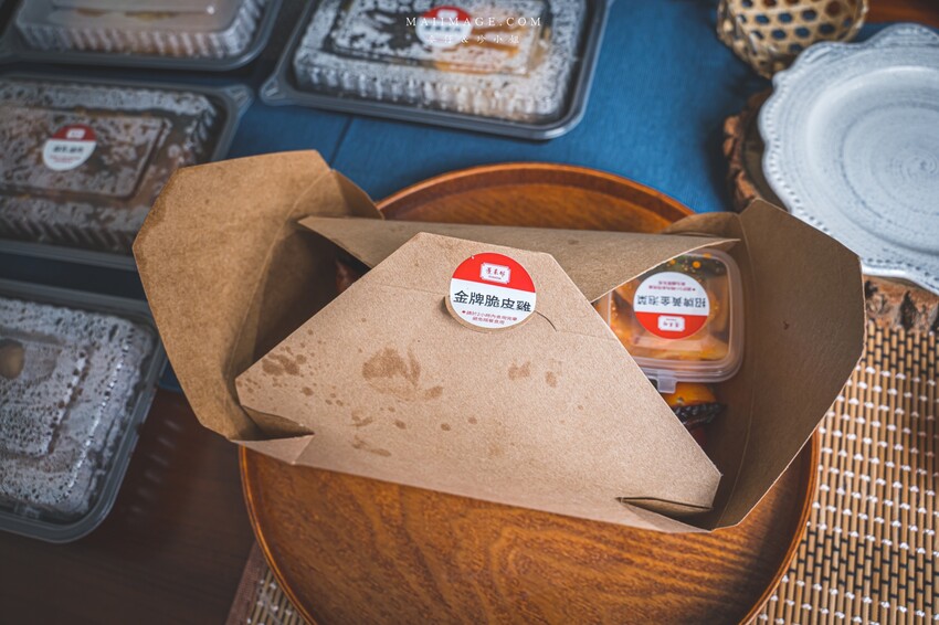 ▲就連金牌脆皮雞也是一樣,因為要顧慮到水氣會影響到雞肉的酥脆口感,所以選用紙盒包裝可以方便透氣,超香的脆皮雞剛拿到就被這香氣跟吸引,真的很讚。雖然跟餐廳裡直接品嚐到的脆皮雞口感還是略受影響,但在這非常時期能夠有這樣的經典美味已經相當感動。