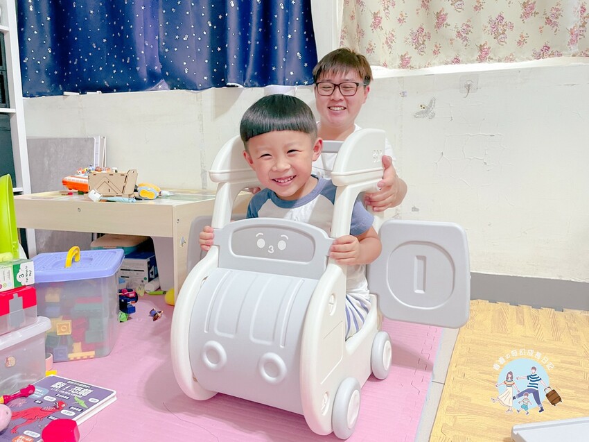 車頭設計非常可愛,輪子不只是裝飾是真的可以動的呦!本來想說睿睿應該鑽不進去,結果竟然讓他進去了!讓睿爸和睿媽大笑呢~~~