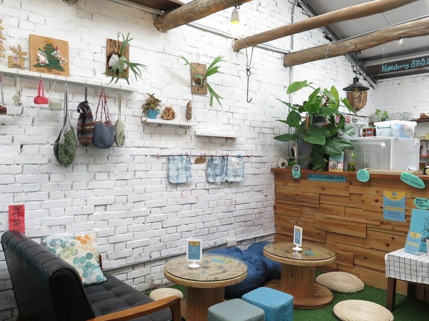 Kakahong是一間很有衝浪感的質感小店,店內利用原木和多樣色彩做裝飾,整體給人相當活潑有趣的氛圍。除了販賣飲料甜點之外,還同時兼賣手作手環、明信片等手作商品。