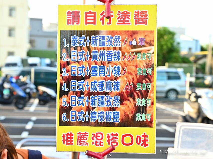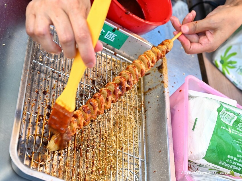 口味糖糖選了店家推薦的泰式加新疆孜然口味,烤麵筋都是現點現烤,麵筋外皮烤的脆脆的,裡頭很Q軟,刷上泰式醬汁,吃起來微酸微甜,加上新疆孜然,層次更豐富,是說這烤麵筋跟糖糖印象中配粥吃的麵筋不太一樣,有點像烤麵腸,整體來說還不錯吃,來鹿峰夜市可以吃看看