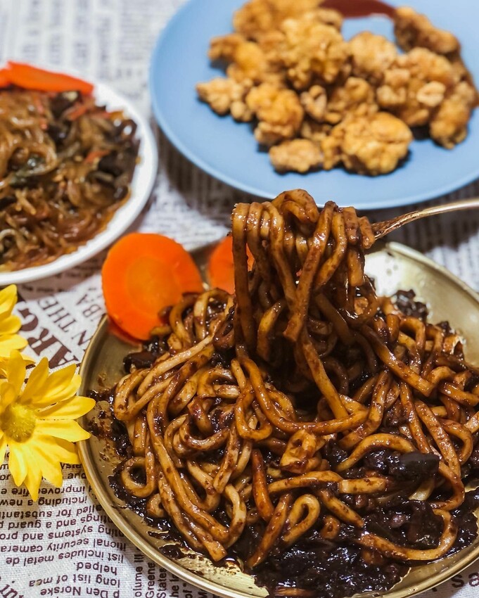 看韓劇時常常看到主角們開心的大口吃著炸醬麵