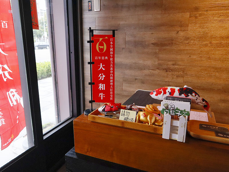 這次引進的大分和牛可是有官方授權認證,不僅有門面上的兩隻大旗桿~待會還能看見兩隻可愛的擺飾小旗桿~店內的候位區大大的『二月牌』刻字和大紅燈籠,營造著老闆喜愛古色古香的中國風,用餐區還有一張清明上河圖呢~
