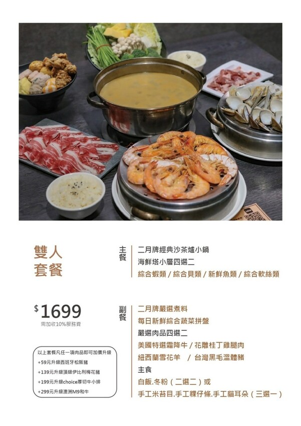 來到二月牌的朋友看到海鮮塔還真不知道該怎麼點,沒關係!這次店家直接推出雙人、四人~八人的多人套餐,更方便來用餐的朋友直接挑選。搭配套餐的內容也都是熱門首選!看著喜歡就直接手刀點下;除了內用外,同樣餐點也有提供防疫外帶,與病毒共存也要與美食共存,宅一點可以,委屈肚子可不行喔。
