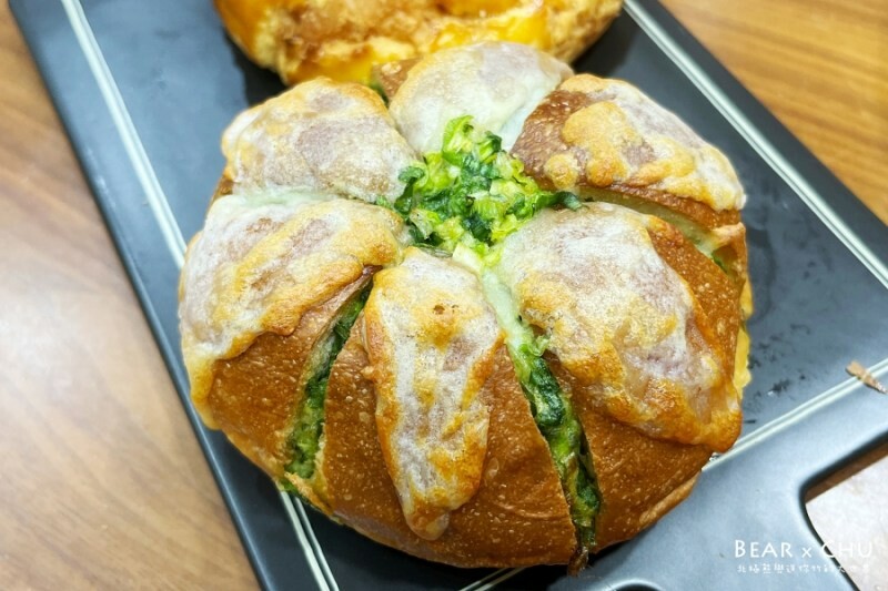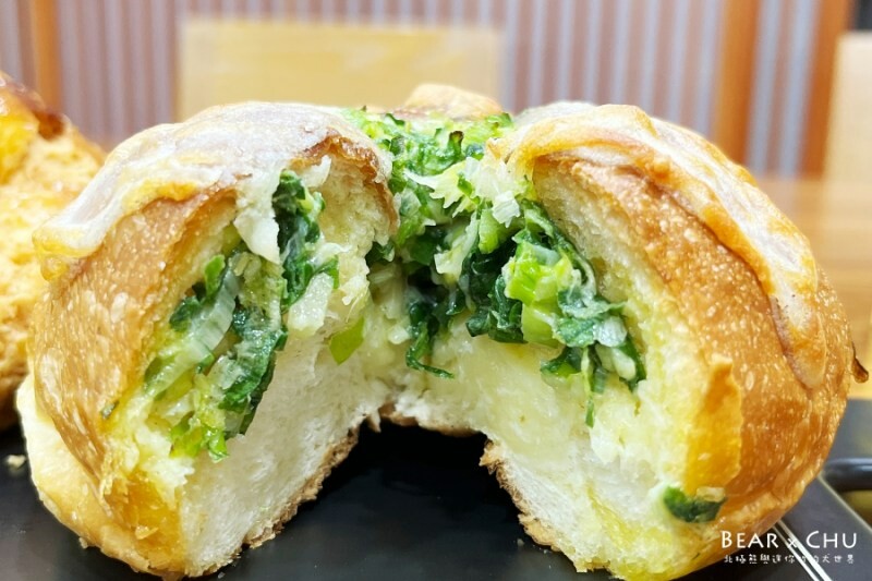 大師傅蛋塔工坊的拔絲香蔥包,切開的口裡填放了不少的青蔥,還加上乳酪增添香氣與風味,也是令人滿意也喜歡的品項。