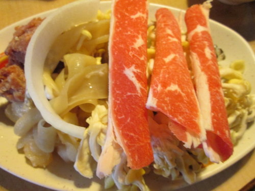 沙拉走來走去實在是不知道要吃什麼,好久沒有吃選擇這麼少的店了,拿了一盤珊瑚菇,勉強搶到三片肉
