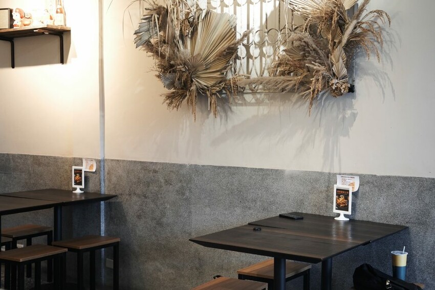 ▼走進【稻麥食堂】後,就能感受到一股像家的氛圍,木質的擺設與暖色系的燈光,搭配原本的老宅建築靈魂,新舊交錯的設計空間環境,古色古香中又不失新穎感,店內有提供置物籃及兒童座椅。