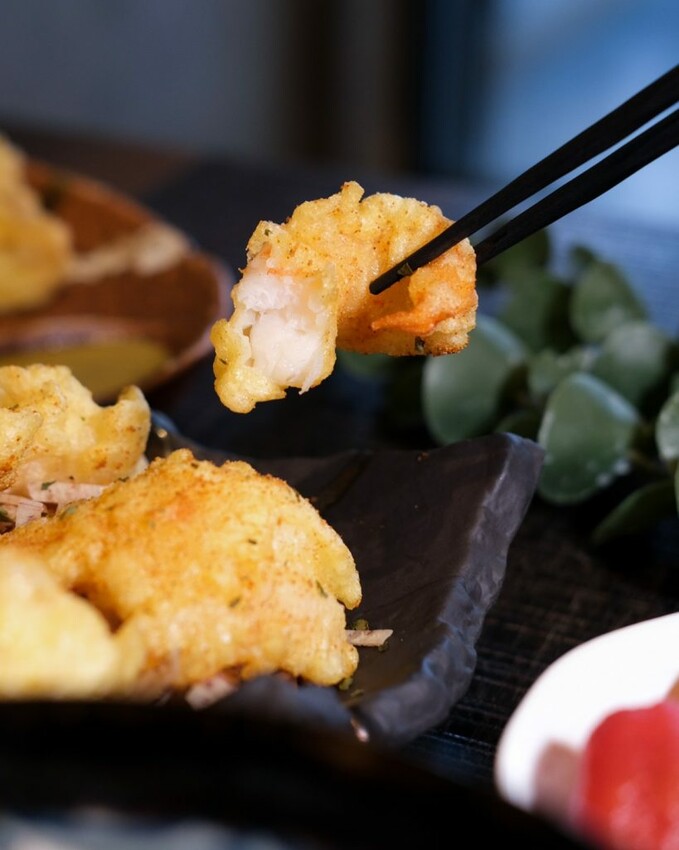 ▼炸過的鮮蝦尺寸看起來不小隻,實際吃起來紮實脆口,不會有過於油膩的感覺。