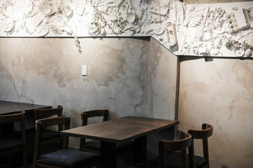 ▼走上二樓,可以發現一個像是包廂的區域,在裝置藝術的點綴下很有設計感,座位大約可容納20-24個人,有安裝電視和音響等設備,很適合包場聚餐辦活動。(包場低消5000元含酒水,用餐時間3小時人數不限)