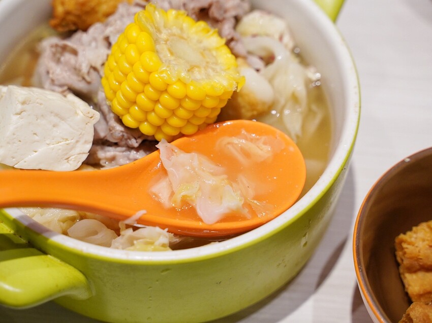 嗜辣的朋友一定要試試新品「泰式酸辣鍋」,使用香茅、南薑、檸檬葉、蝦醬等泰式香料下去熬煮,湯頭酸酸辣辣且充滿南洋香料香氣,溫潤的辣度,整碗湯喝完都沒問題。