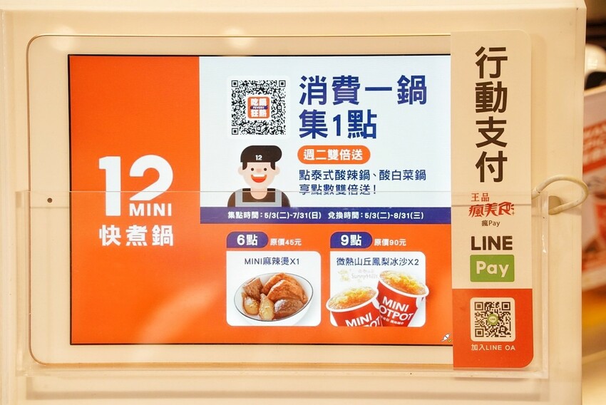 活動內容:門店內用、外帶,消費1鍋可集1點,每週二消費泰式酸辣鍋或酸白菜鍋再享點數雙倍送,集滿指定點數即可兌換好禮!集滿六點可兌換「MINI麻辣燙乙份」、集滿九點可兌換「微熱山丘鳳梨冰沙 兩杯」。(集點期間:即日起至7/31,兌換期限至8/31止。)