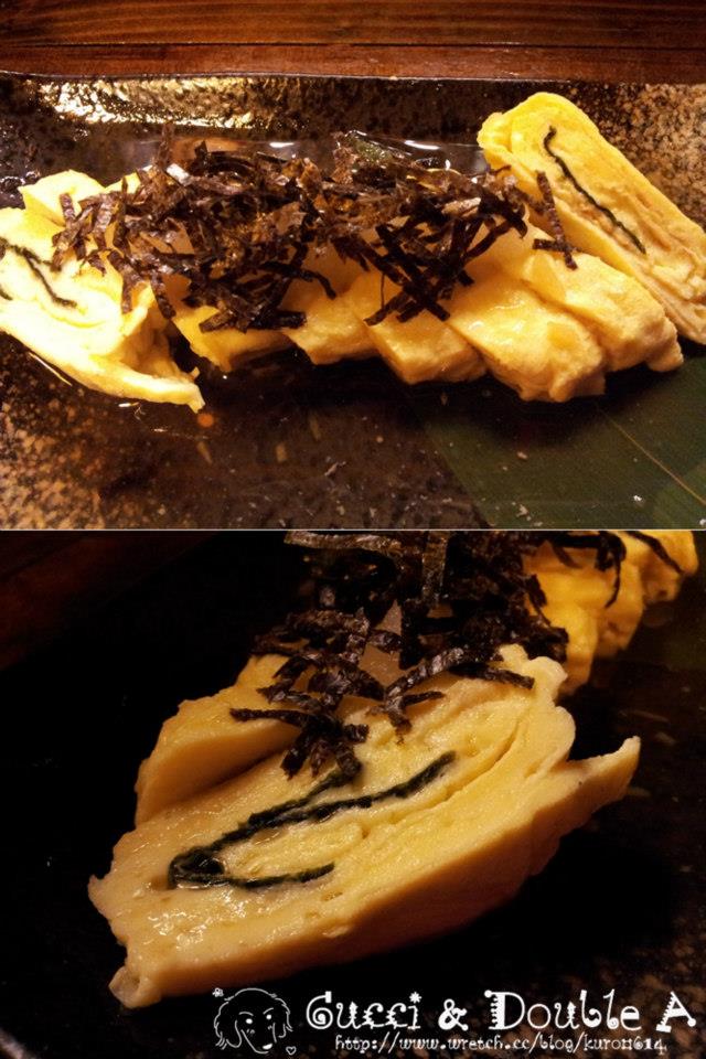 最近不知道發甚麼瘋,迷上"將太的壽司"這部日本料理漫畫,所以點了一到魂牽夢縈的"和風玉子燒"(NT160),喀咘狸的玉子燒不是壽司上那種煎的乾乾的,吃起來很嫩,帶有很濃郁的湯汁,中間還夾了海苔,口感不賴!!