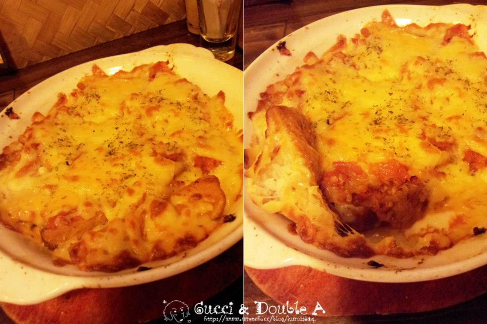 上次來點的是"焗烤明太子馬鈴薯"(NT180),阿喵不是很喜歡明太子的感覺,所以這次點的是"焗烤辣肉醬薯條"(NT180),厚厚的焗烤配上不辣的義大利肉醬,阿喵是起司偏執狂,所以這道也給很高的評價!!