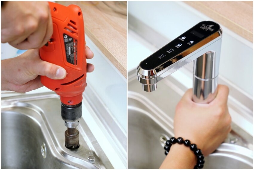 人造石、不鏽鋼在安裝上就沒問題;如果是石英石或其他材質的話就要評估是否要洗洞,他們也會給予最好的評估與建議。這陣子剛好是疫情期間,如果不方便讓技師前往到府場勘的話,也可以提供廚房、檯面、廚下空間照片或影片,就可以直接線上諮詢囉~~整個超方便!