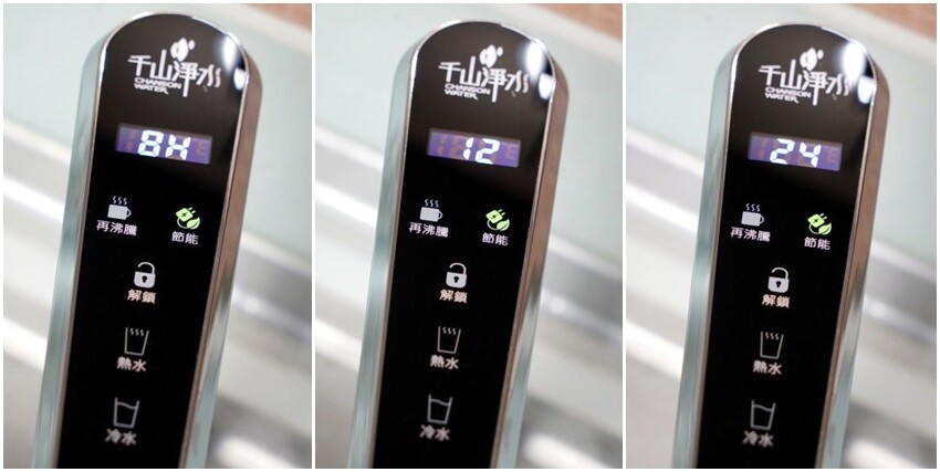 ▼熱水的溫度設定也很簡單,長按熱水鍵5秒,上頭就會顯示想要設定的溫度,每按一次就會跳到下一個設定的溫度,像是100度C➝98度C➝95度C➝90度C➝85度C➝80度C➝75度C➝70度C➝60度C➝50度C是一個循環,共有10種不同的溫度設定,設定想要的溫度後靜待三秒就會跳回目前熱水溫度,同時會發出”嗶”的一聲即代表設定完成!