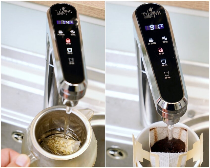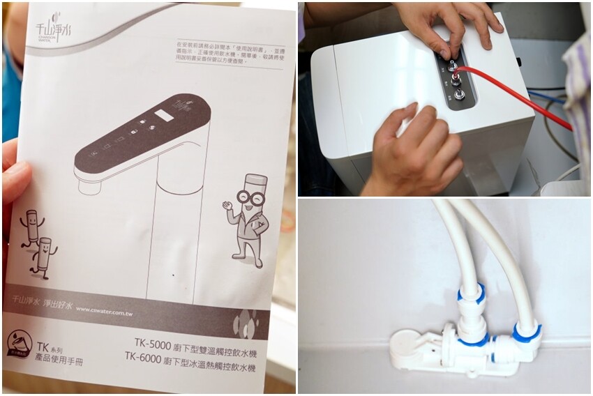 ▼是的,我們家裝新的飲水機了(灑花)~~這次我們裝的是千山淨水「TK-5000 廚下型雙溫觸控飲水機」,流理臺就只有一個觸碰式龍頭,主機藏在底下的櫥櫃裡頭,整個很省空間,看起來也很美觀!