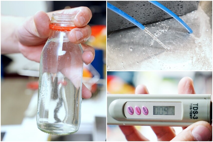 此外,還會採用TDS水質檢測筆來檢驗水質,反映出水中離子的總含量,作為軟硬度的參考。世界衛生組織所公布的可飲用水標準為TDS小於50,千山淨水的標準更是直接降到小於30,當天在家裡測出來的水質是9,已經可以歸類為可生飲的軟水了!