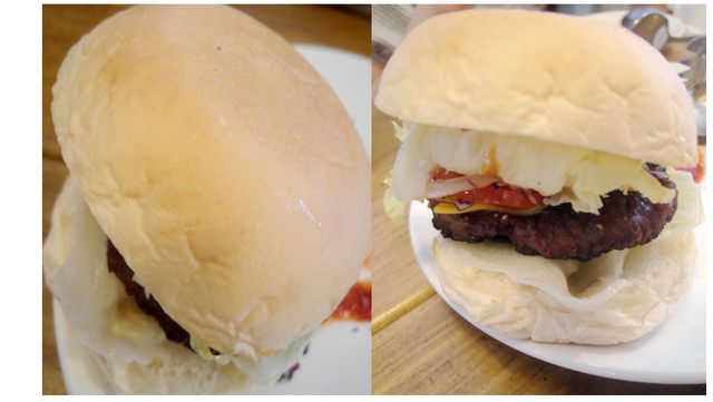 一旁附的煎蛋,是起士蛋,口感濕軟綿密。