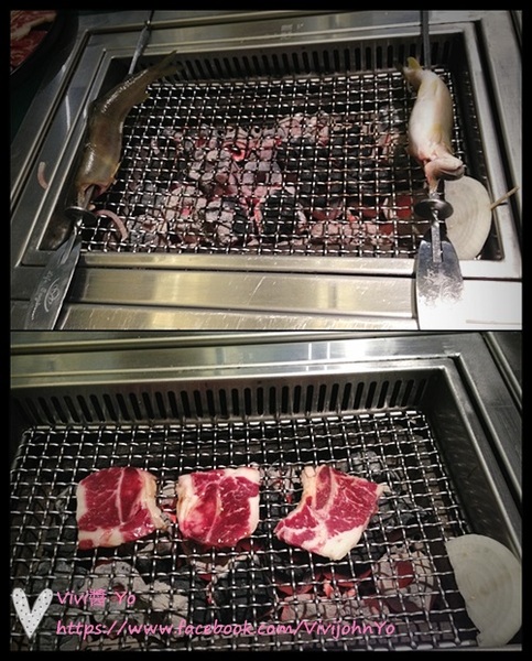 因為比較難駕馭,所以店員會幫你注意,基本上因為烤的時間要很久,所以就先把他架在兩邊,等吃到尾聲時,店員會放下烤網加速烤熟,然後還會為你去骨唷!