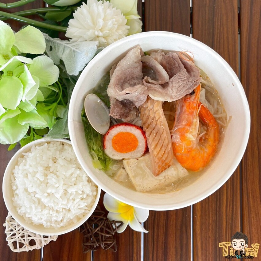 小米首推海鮮豆腐鍋(108元),有蝦子、魷魚、蛤蠣、2片豬肉片、豆腐、豆皮、火鍋料、金針菇、蔬菜、冬粉等,這樣有著滿滿配料的鍋物再加一碗白飯才108元,真的太超值了!