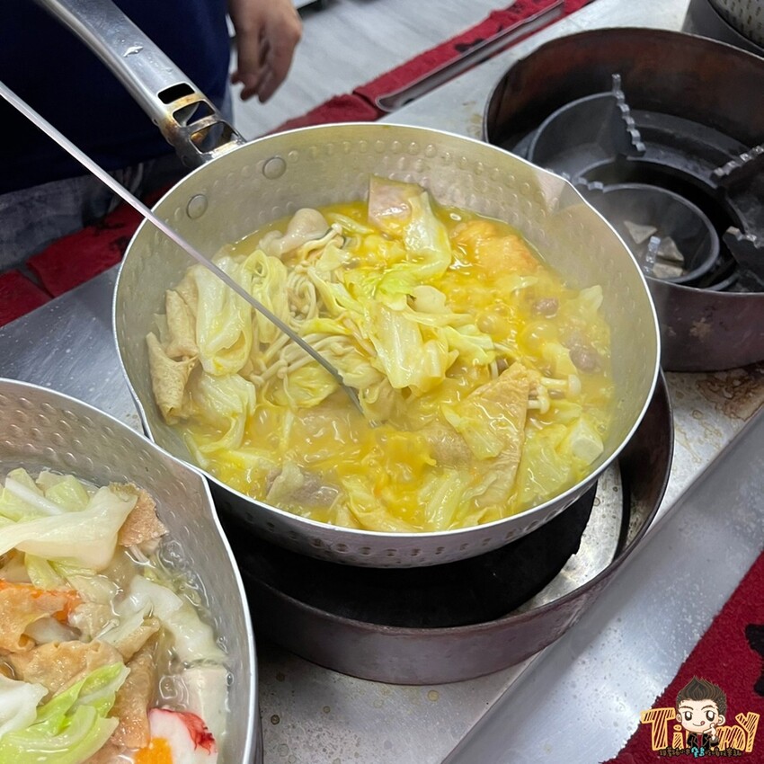 店家會先將各個鍋物的食材先備好,再倒入鍋中,接著倒入店家自己熬煮的高湯。
