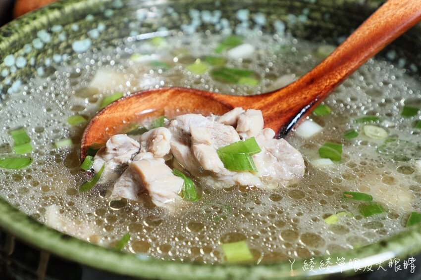 剝皮辣椒雞湯的湯頭香辣帶勁,辣度介於小辣到中辣之間,喝起來還很甘美!雞肉也是嫩到不行,喝過就回不去了耶,不敢吃辣的朋友可以先跟老闆說,辣度可以調整。