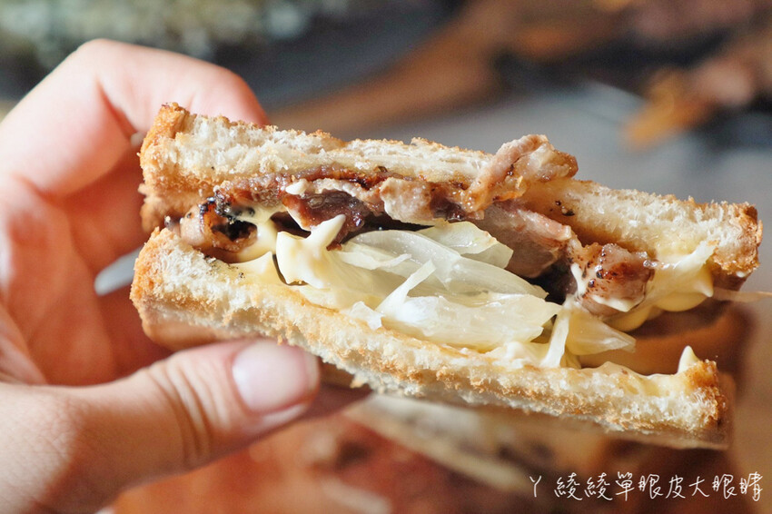 這道就是連老闆也不知道為什麼莫名其妙變成人氣招牌的餐點,哈哈哈哈!堅持用純炭火去烤,其它口味有炭烤豬五花三明治、炭烤海陸三明治(牛五花+龍蝦沙拉)。